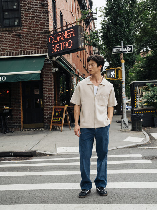 HARVARD REVERSE FLEECE CARDIGAN - MUSHROOM