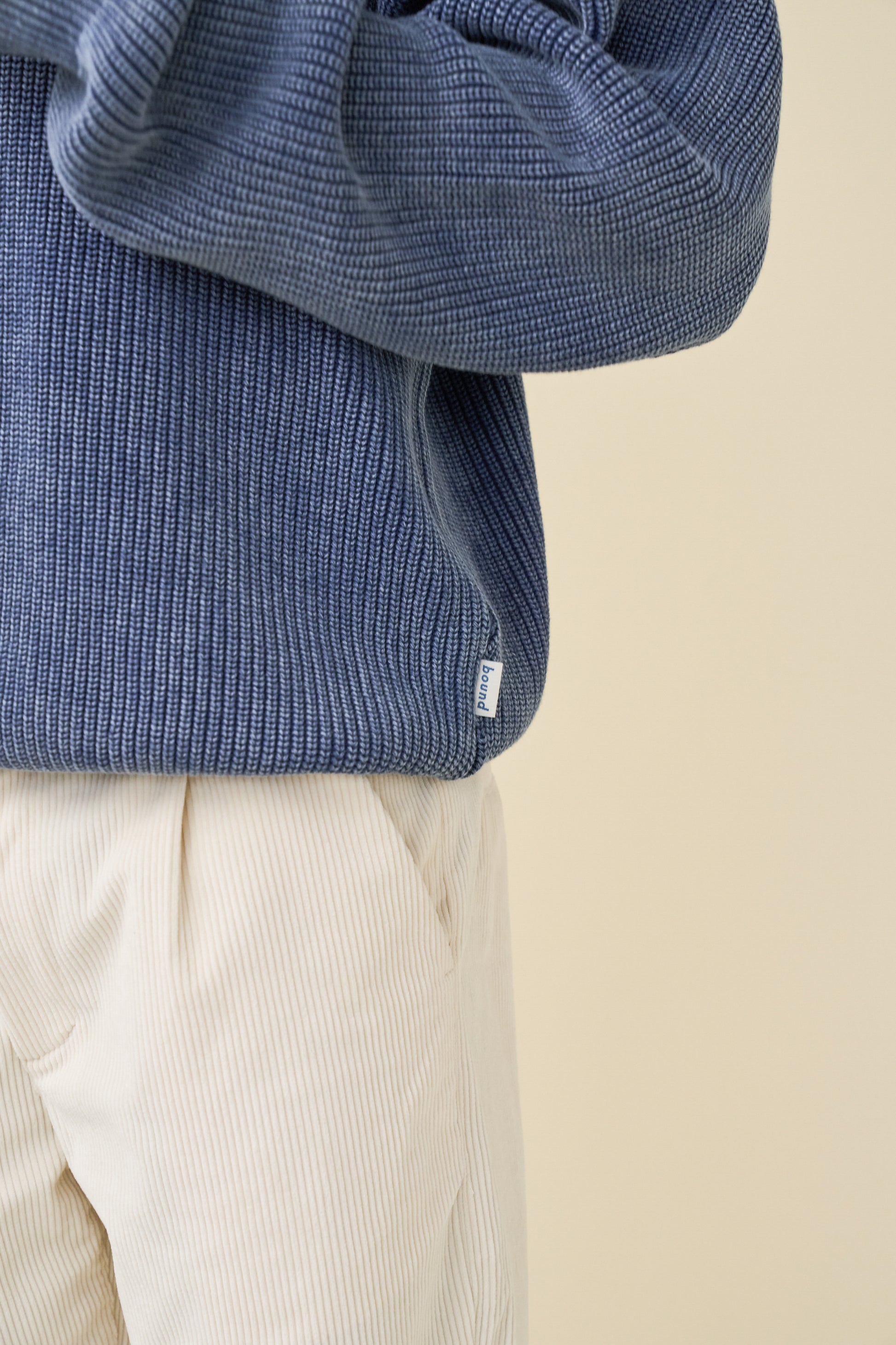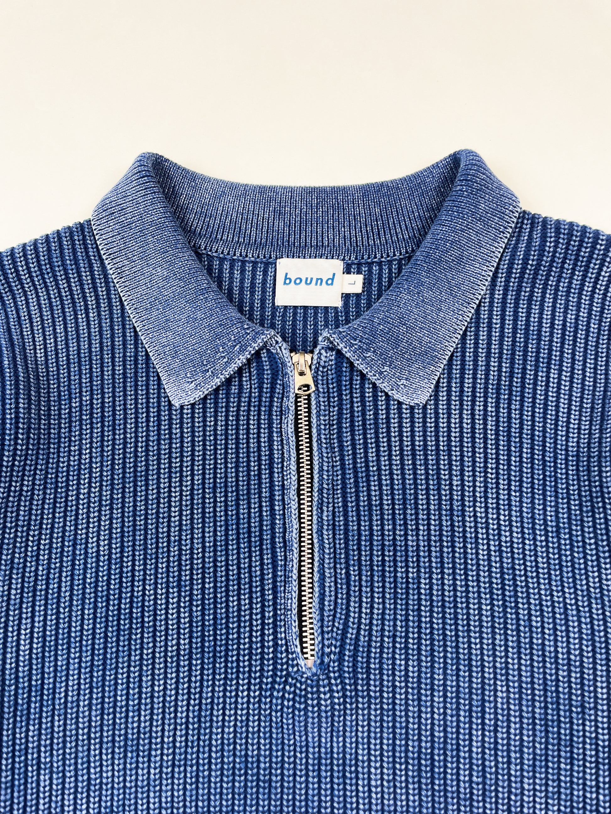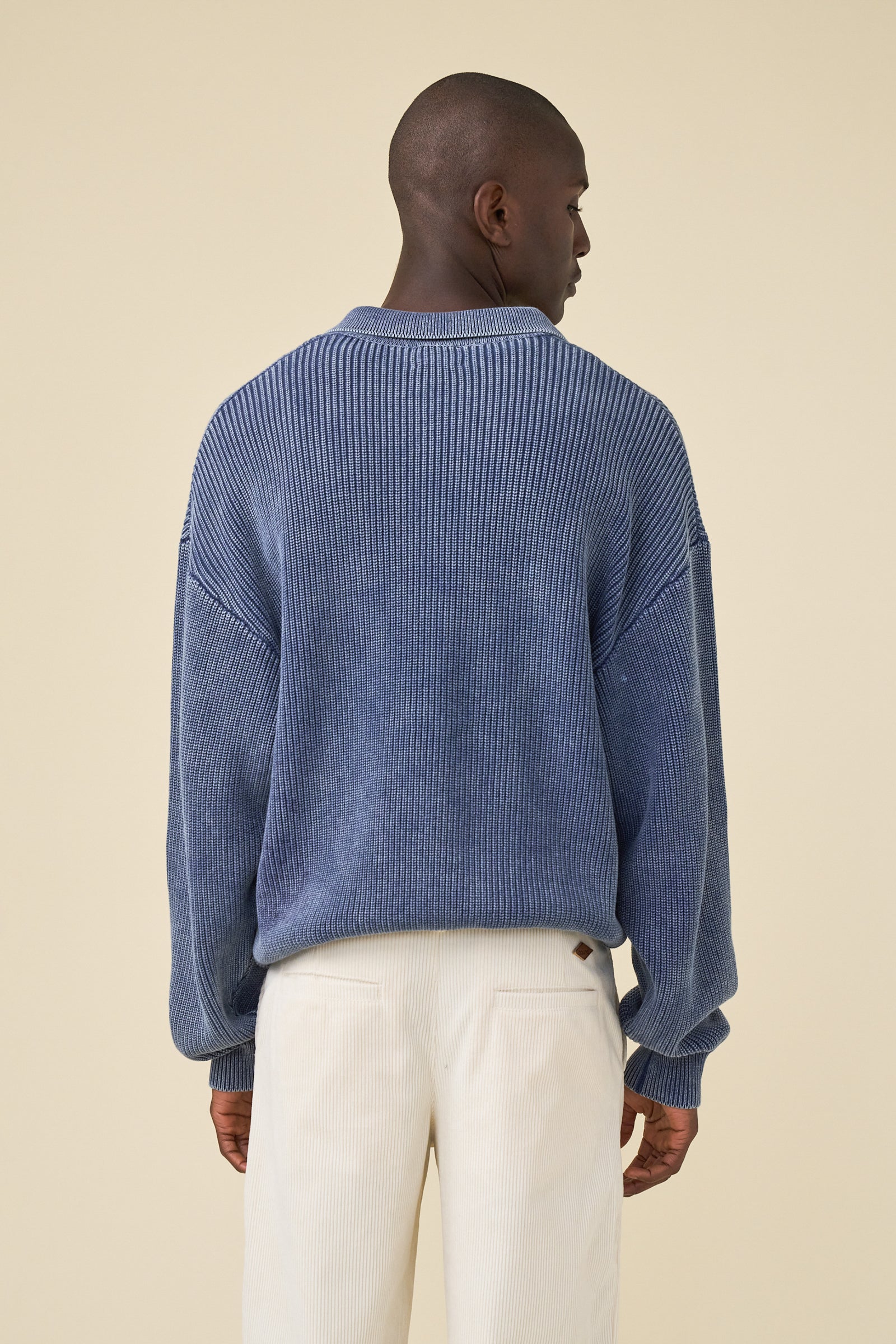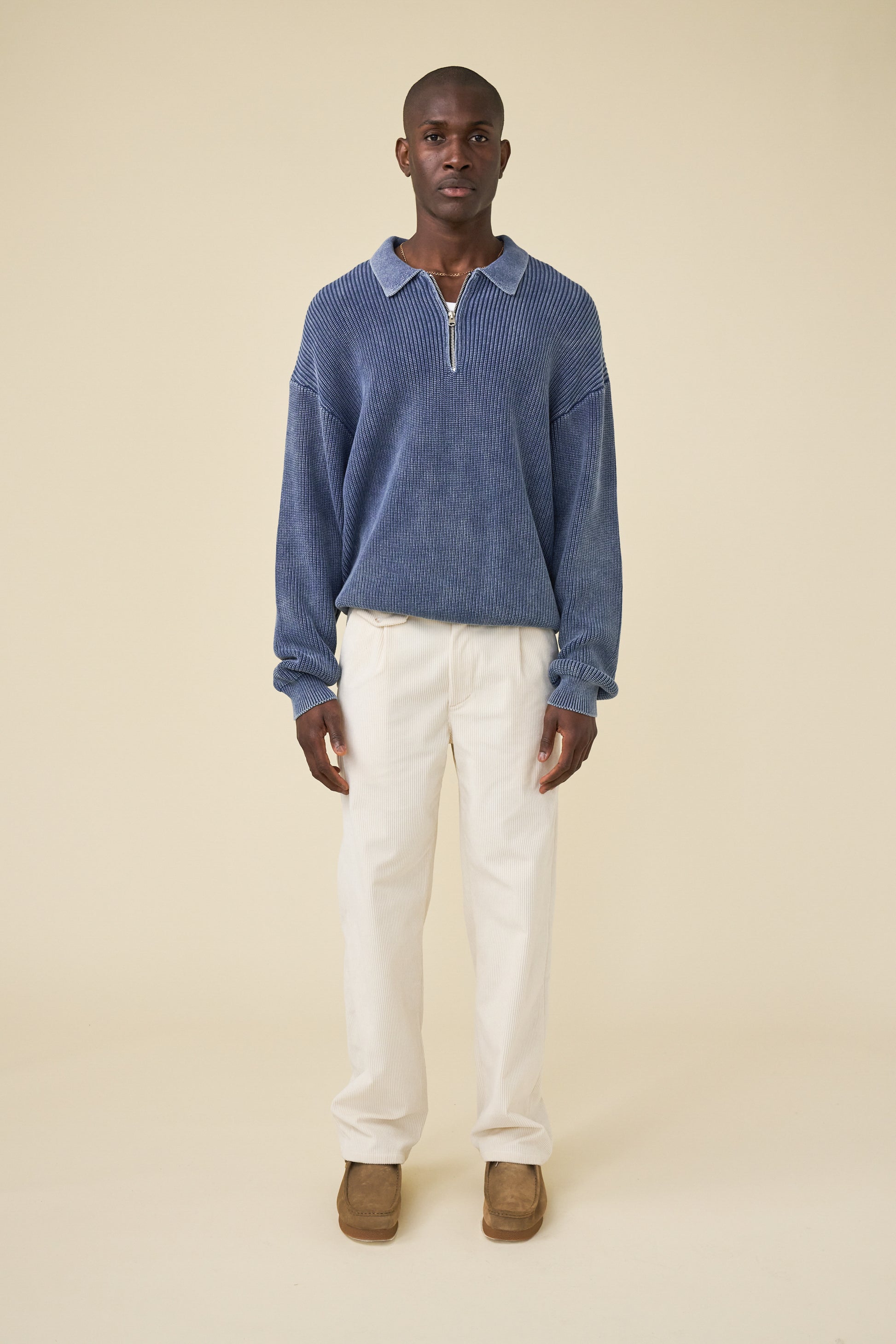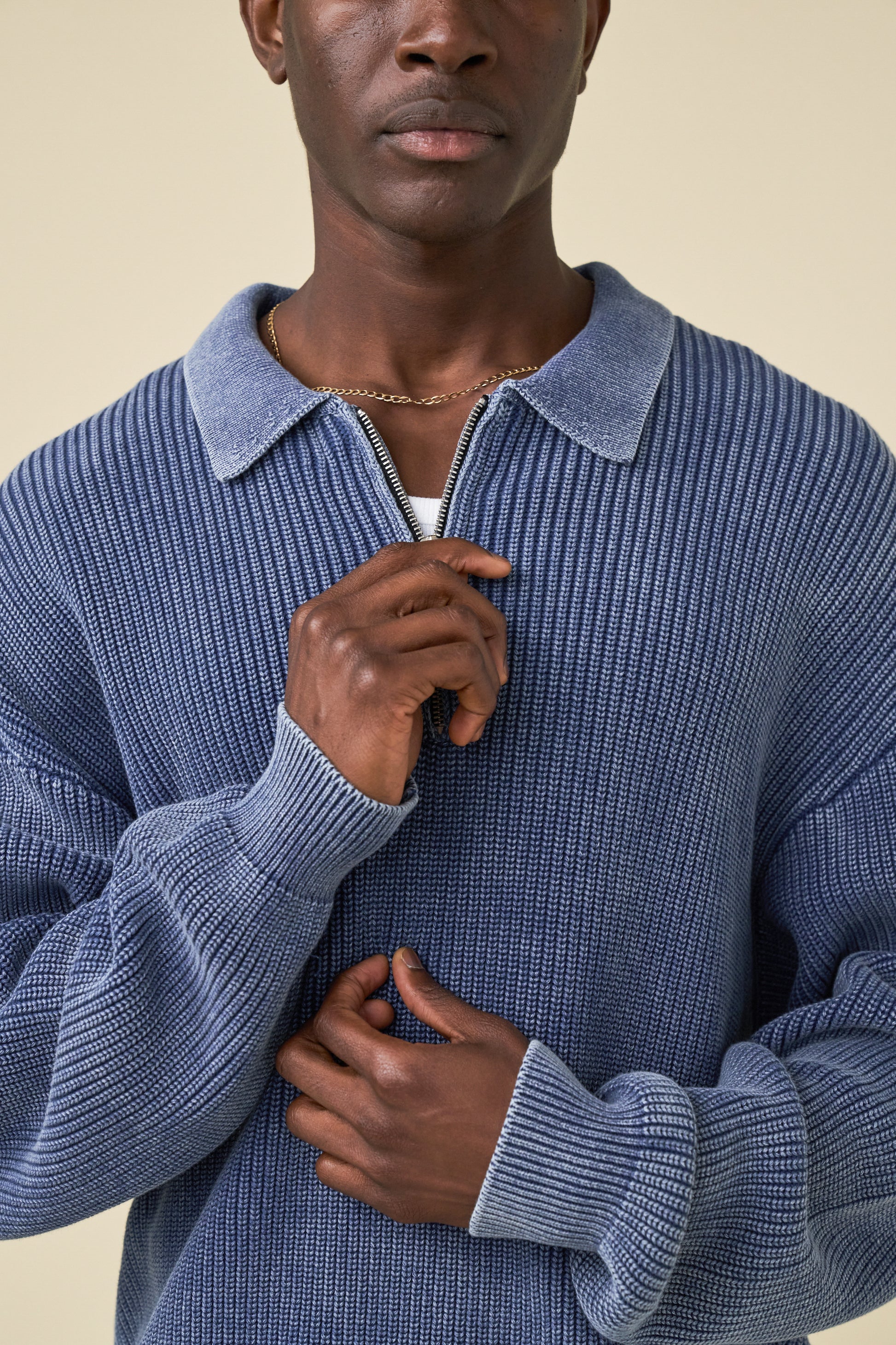 NAVY ACID WASHED HALF ZIP KNIT PULLOVER