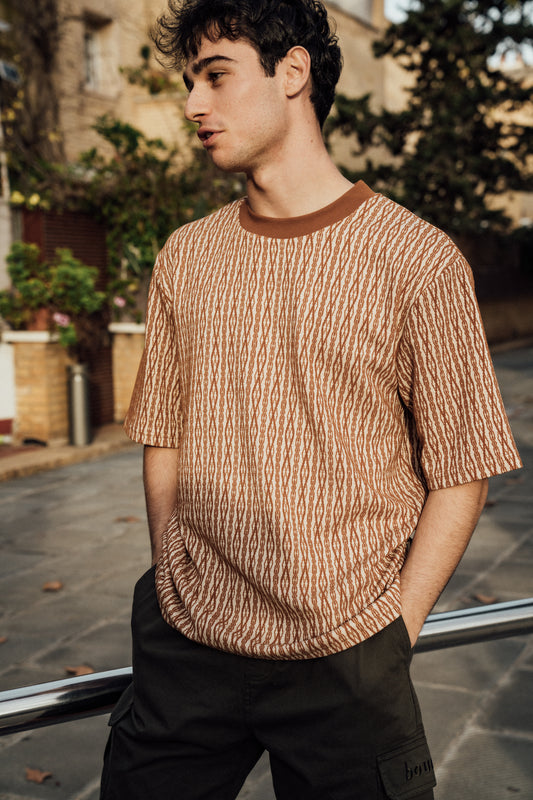 PEACHED STRIPE TEE - BROWN & YELLOW