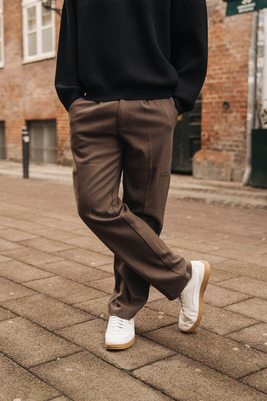 DOGTOOTH SMART TROUSER - FOX BROWN