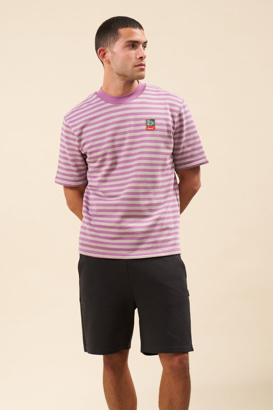 STRIPE RETRO PATCH TEE - MAUVE