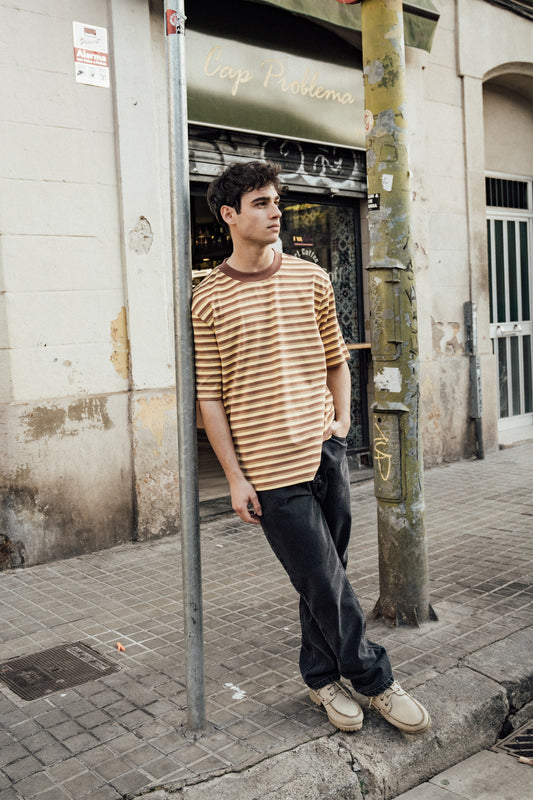 PEACHED STRIPE TEE - BROWN & YELLOW