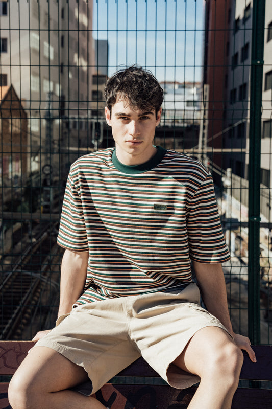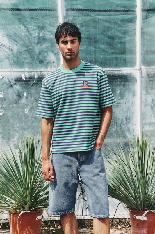 PIQUE STRIPE TEE - RETRO GREEN / BLUE / WHITE