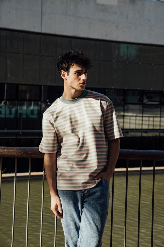 PEACHED STRIPE TEE - CHARCOAL & SAGE